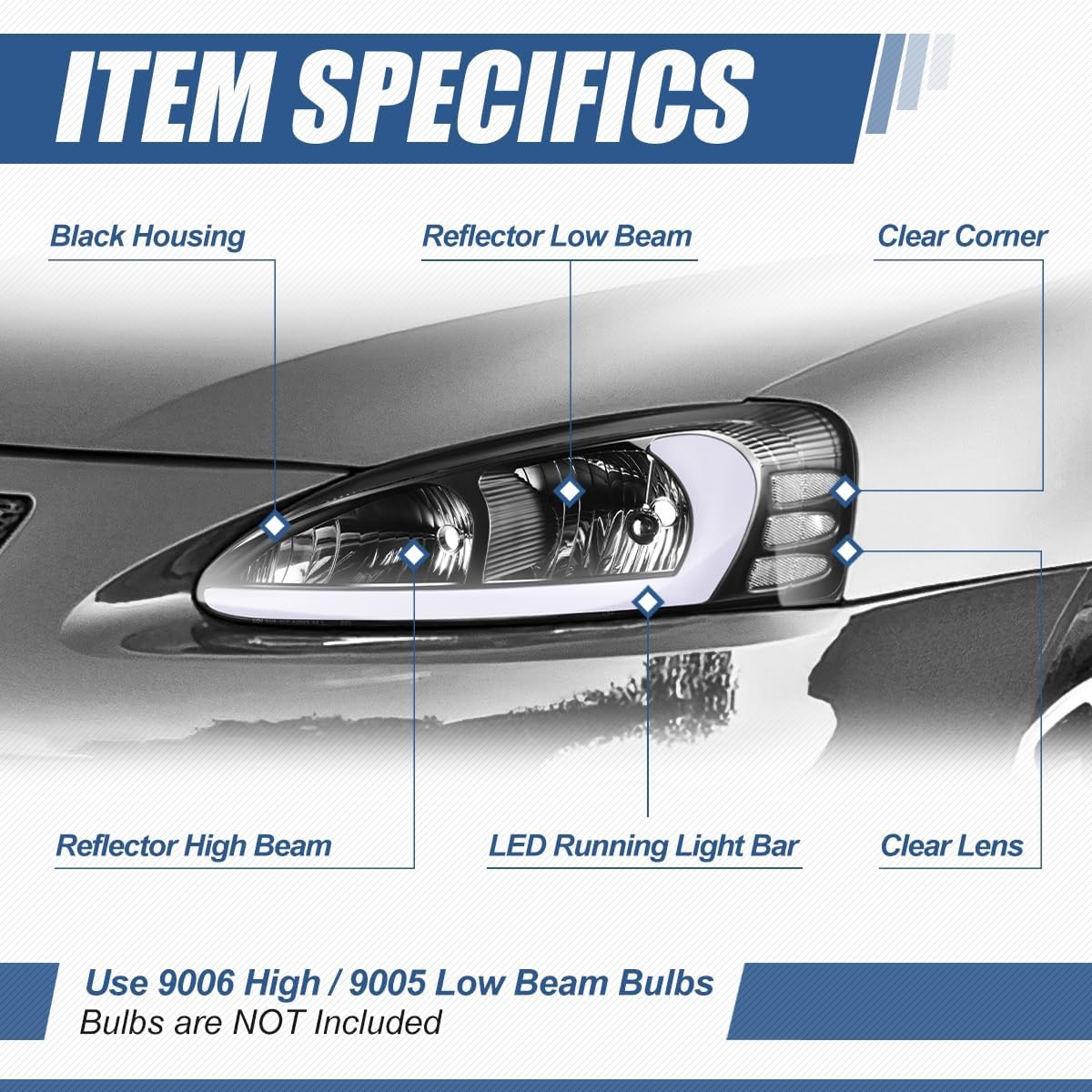 | Light Source | 9005 High/9006 Low, 3757A Signal/Parking Light |