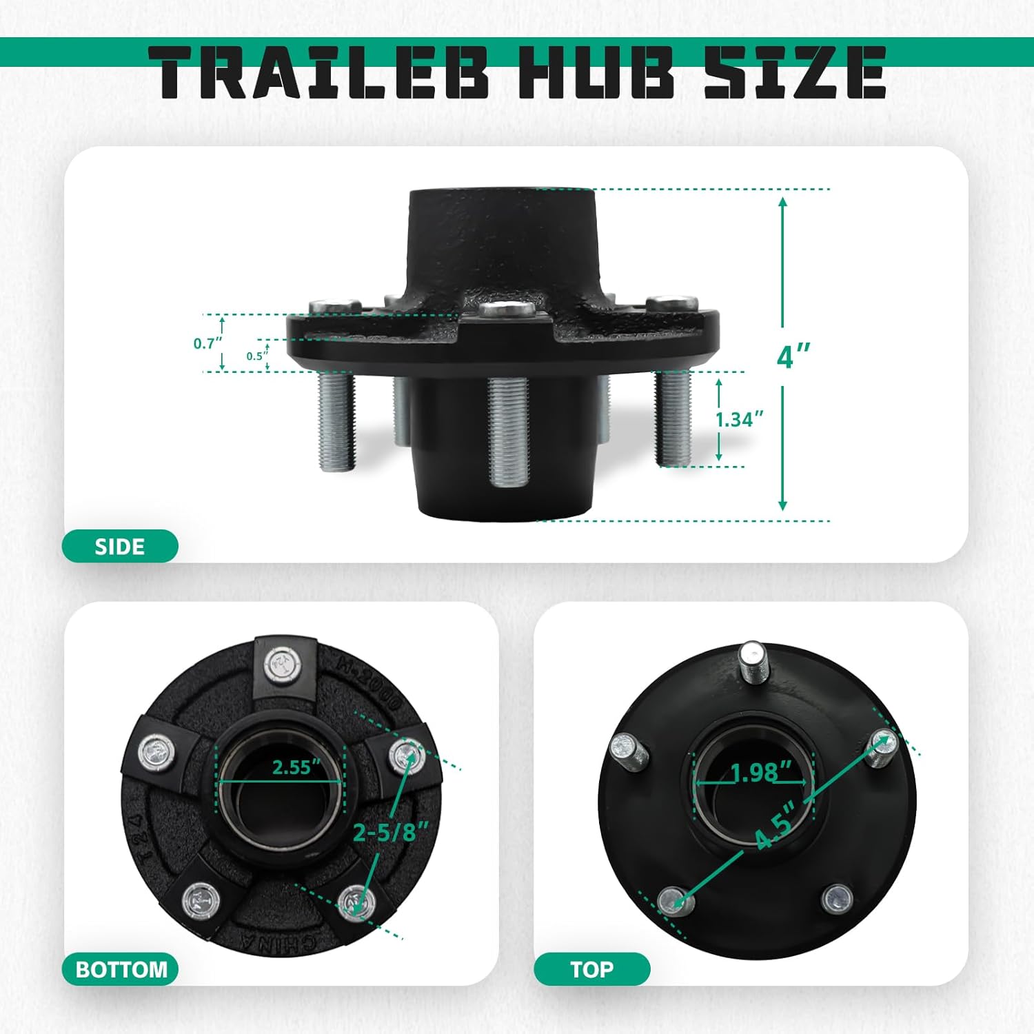 | Manufacturer Part Number | 2 Sets 3500lb 5 Bolt 4.5 Trailer Hub |